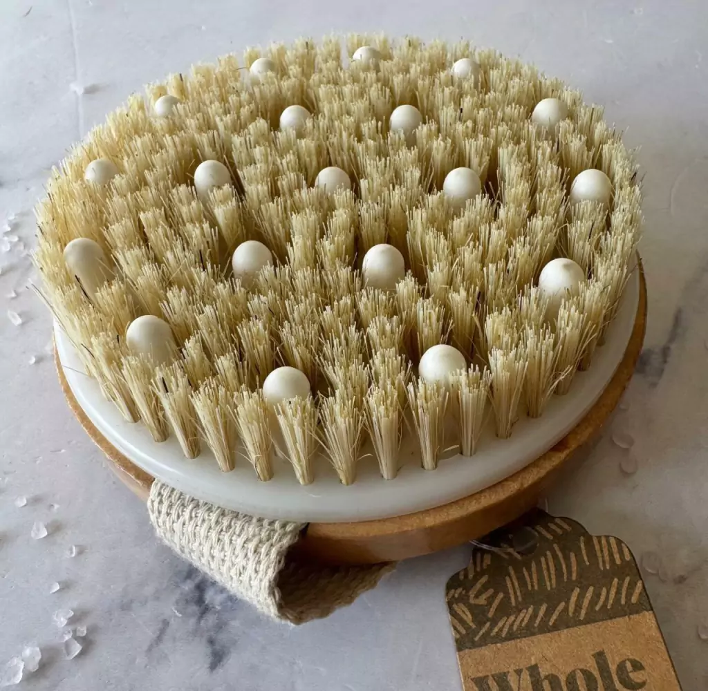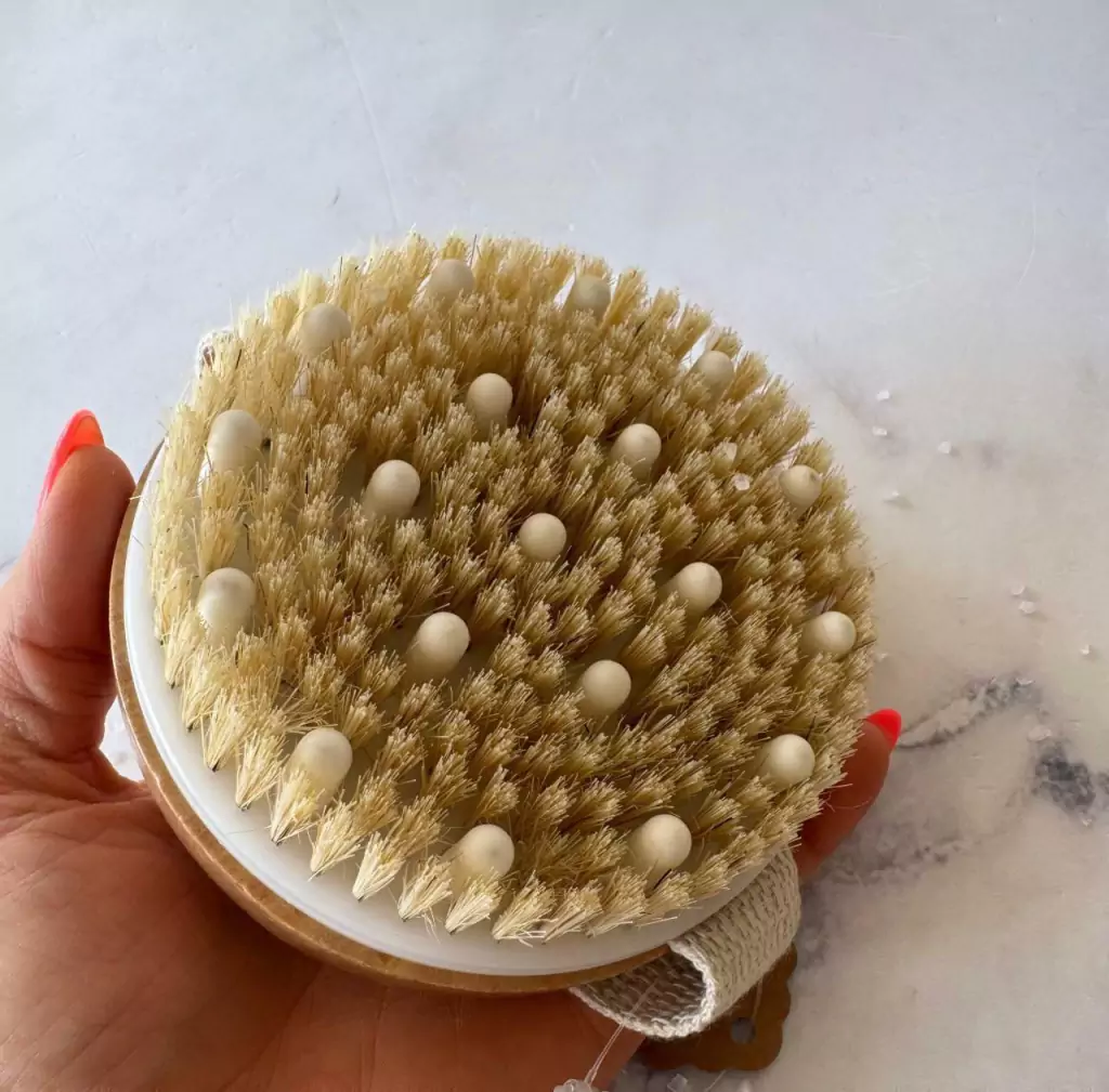 Cepillo de baño diseñado con bambú y cerdas naturales.