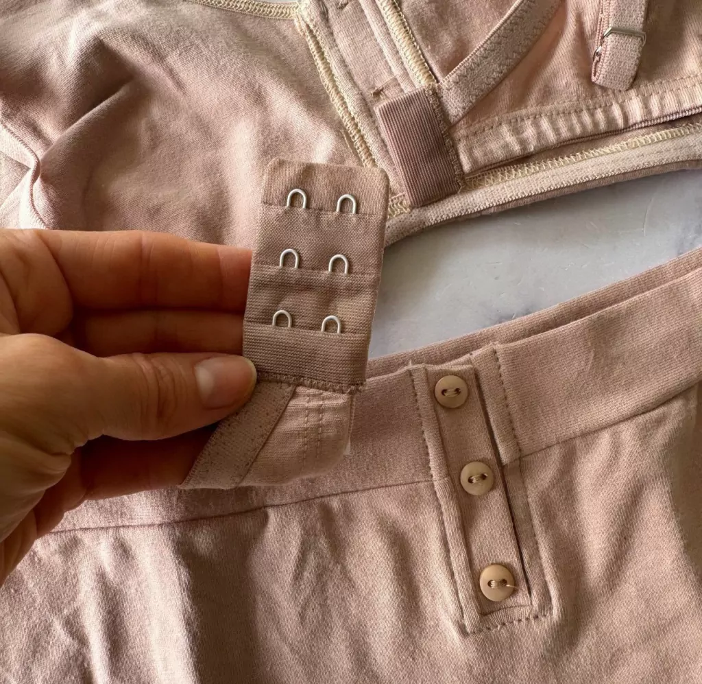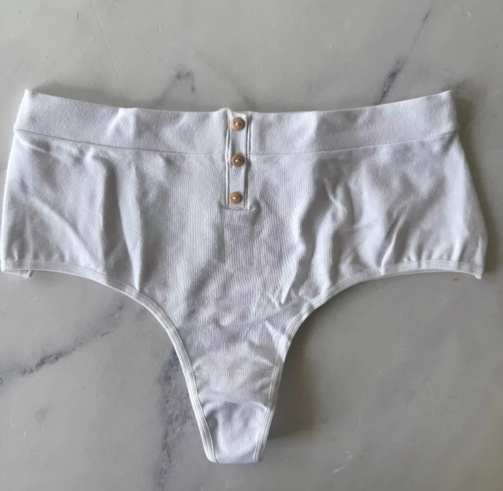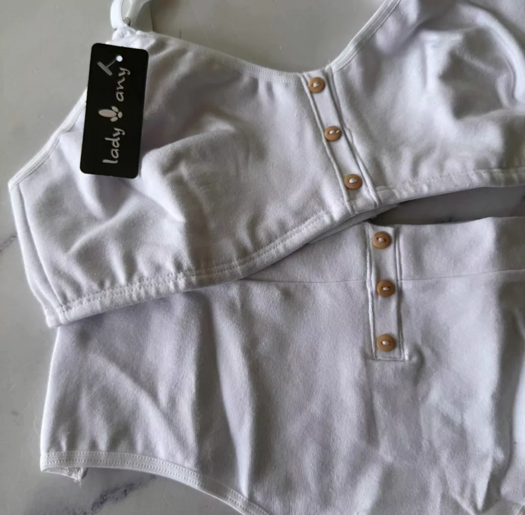 Tanto el corpiño como la bombacha vienen con botones en la parte media de la prenda (no se abren, son solo de fantasía).