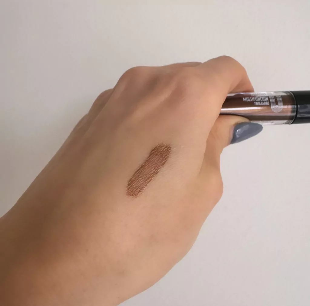 - Puede aplicarse sola, o sobre la misma utilizar brillo o labial.